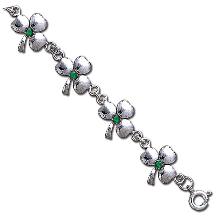 Silver Clover bracelet features 3mm green synthetic emerald stones