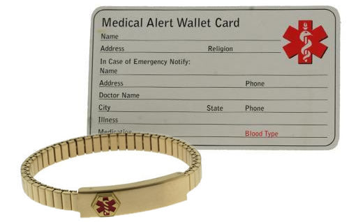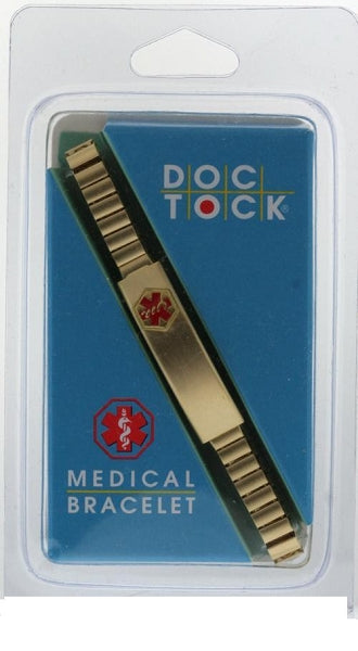 DOC TOCK 5in - 7in gold plated stainless steel medical bracelet that can be engraved with your medical condition.