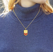 A 14k or 10k yellow or white gold United States Navy petty officer first-class rank pendant.