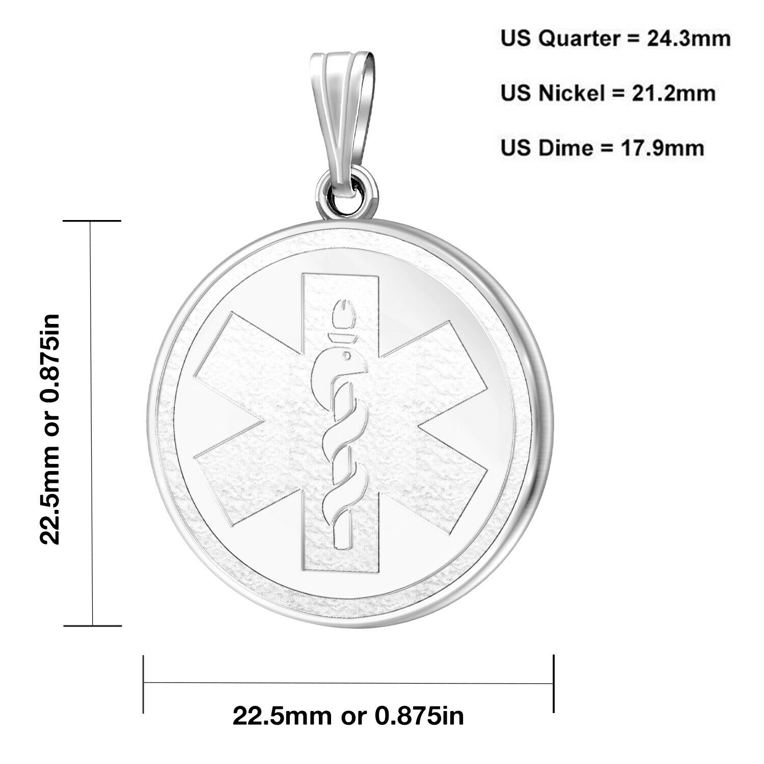 Ladies 925 Sterling Silver Round Medical Pendant, 22.5mm